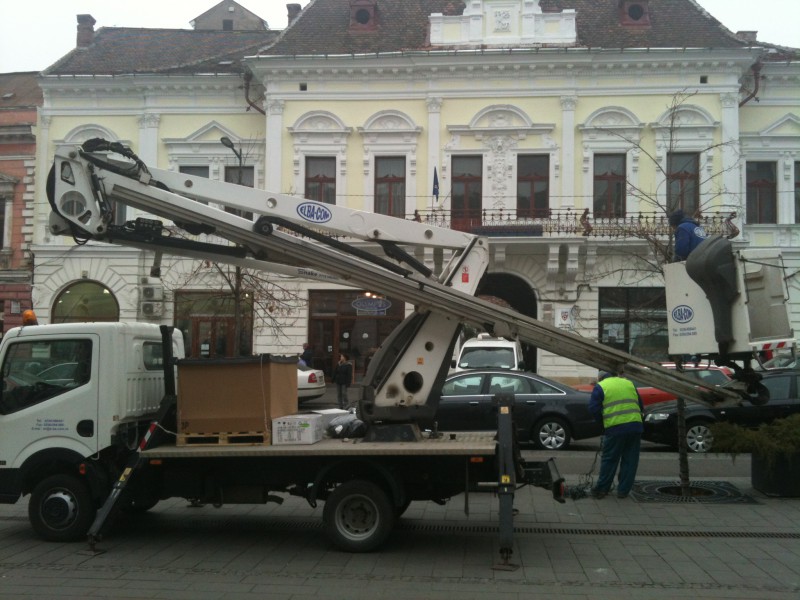 Municipiul Cluj-Napoca se pregătește de sărbătorile de iarnă. Societatea Neon Lighting, cu care Primăria Cluj-Napoca are contract, a început în
