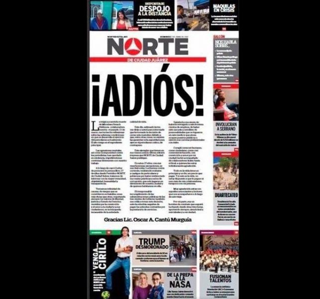 Norte, un ziar din nordul mexican Ciudad Juarez, situat la granița cu SUA își va încheia activitatea, după 27 de