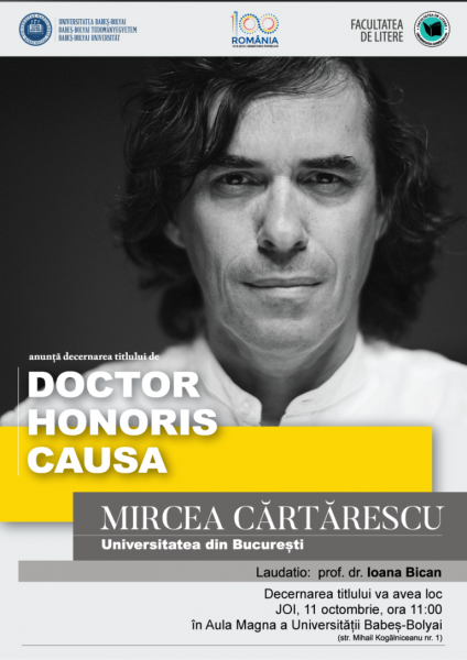 Universitatea Babeș-Bolyai a organizat astăzi, începând cu ora 11, ceremonia de decernare a titlului Doctor Honoris Causa domnului Mircea Cărtărescu, profesor la Universitatea din