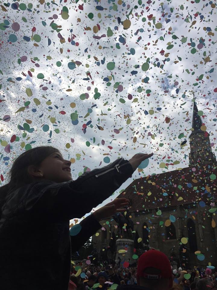 Sute de spectatori s-au adunat astăzi, 27 mai 2017, în Piața Unirii la ora 17, pentru a admira parada organizată cu ocazia Zilelor Clujului. Cei veniți la eveniment au avut prilejul să întâlnească Campioana Națională a României la Baschet U-BT Transilvania, dar și să urmărească lansarea tunurilor de confetti.