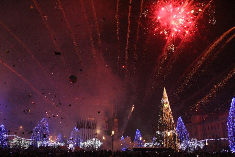Anul acesta mii de clujeni au celebrat anul nou în Piața Unirii, unde s-a organizat Târgul de Crăciun și concerte
