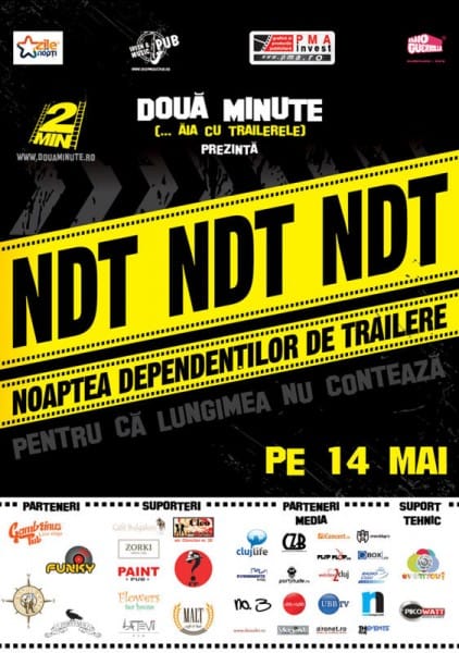 Evenimentul Noaptea Dependenţilor de Trailere (NDT), organizat de Asociația Două Minute, va avea loc sâmbătă, 14 mai, în Irish Music
