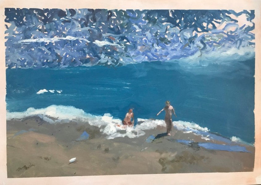 Cain și Abel jucându-se pe plaja. Lucreara face parte din seria de