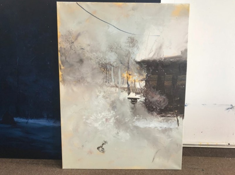 O atmosfera grea, de iarnă, un peisaj care este rezultatul unor frământări interioare transpuse pe pânză.