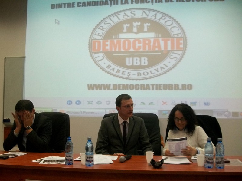 Prima dezbatere între candidaţii la funcţia de rector a Universităţii Babeş-Bolyai a avut loc miercuri, între orele 18:00-20:00, în sala